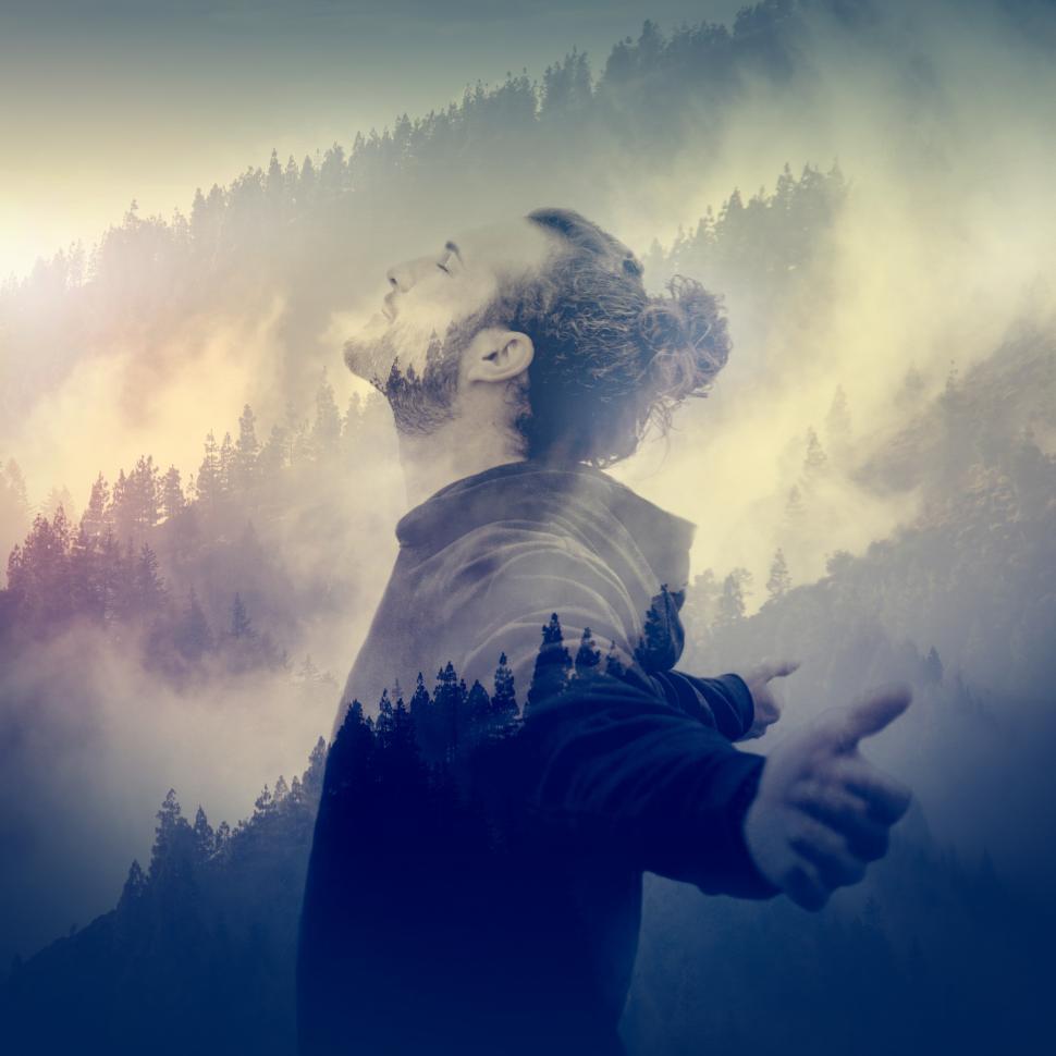 Ein Mann öffnet sein Herz für die nebeligen Wälder des Schwarzwaldes
