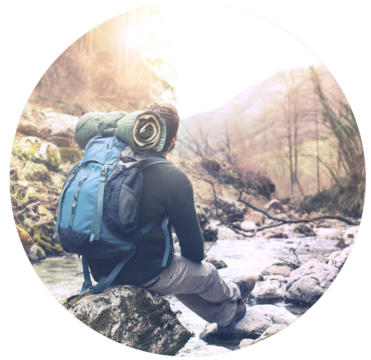 Ein Mann genießt eine Flusslandschaft