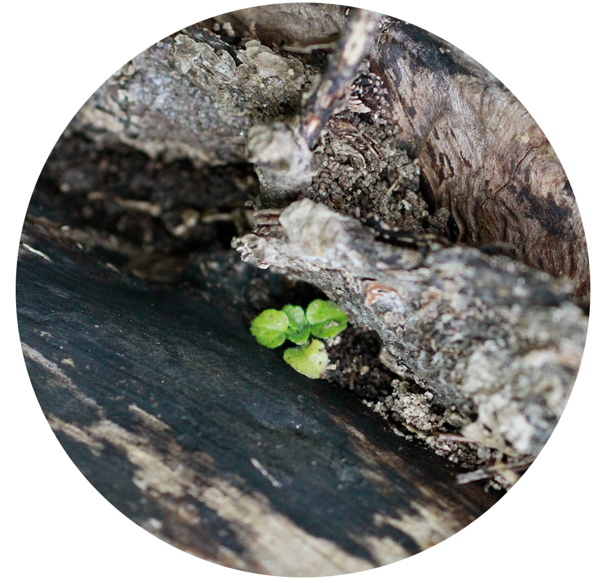 Ein Keimling wächst aus totem Holz