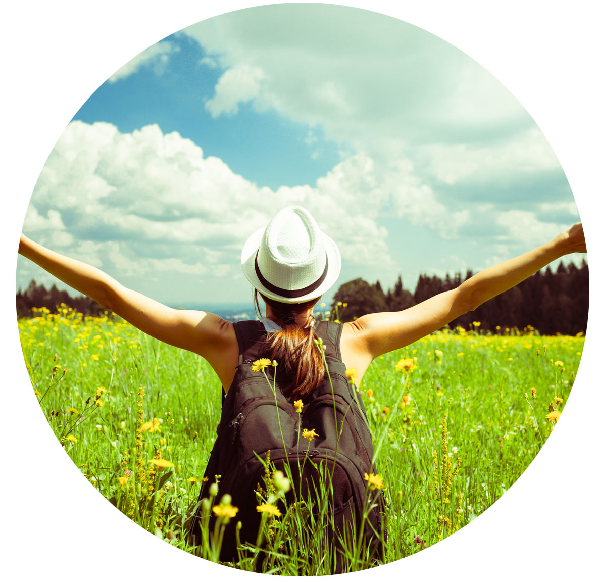 Eine Frau breitet die Arme aus